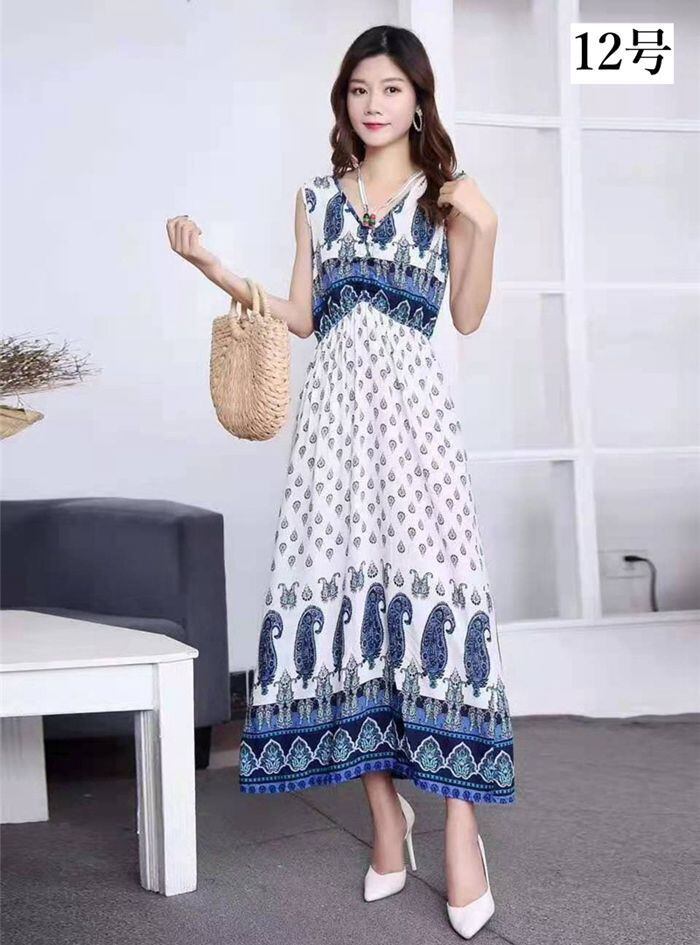ワンピース レディース 総柄 エスニック ノースリーブ ロングワンピース マキシ丈 ロング丈 クルーネック 夏 薄手 ゆったり 大人可愛い 体型カバー リゾート 旅行 ビーチ カジュアル きれいめ おしゃれguwei05