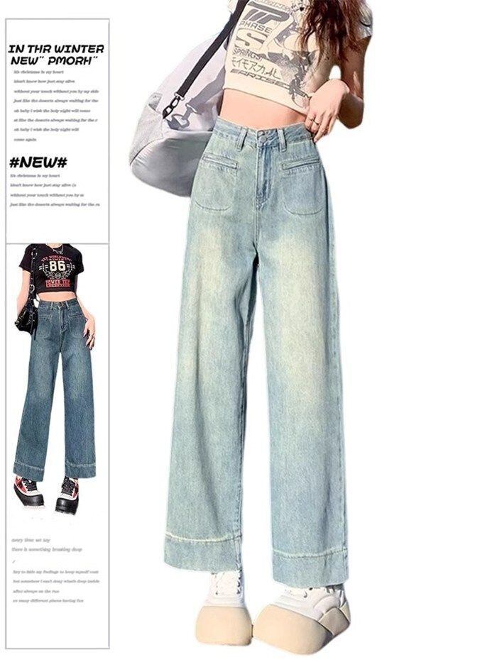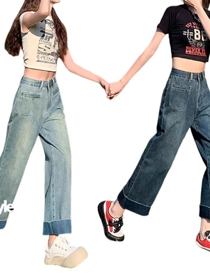 ロールアップ デニムパンツ 即購入OK レディース ワイドパンツ 大きいサイズ ジーンズ ジーパン ワイドジーンズ 体型カバー ボトムス ストレート ハイウエスト ズボン脚長 dayuan02 | オキナ商店