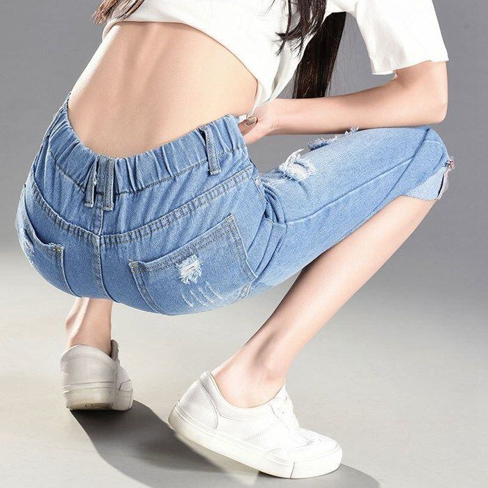 クロップドパンツ デニム 即購入OK レディース テーパードデニム ダメージジーンズ デニムパンツ ロールアップ ジーンズ ジーパン ズボン テーパードパンツ レディース ゆったり 7分丈 カジュアル きれいめ ウエストゴム 送料無料 sheyu01 | オキナ商店