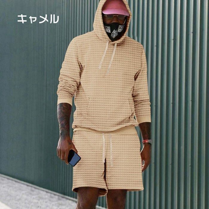 上下セット セットアップ メンズ ワッフル 凹凸 大きいサイズ パーカー ハーフパンツ 夏物 バスケットボールウェア スポーツウェア ルームウェア 部屋着 メンズ ファッション 父の日 プレゼント yifengyu166 | オキナ商店