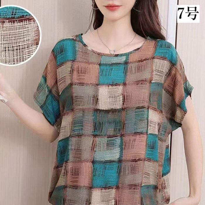 Tシャツ レディース カットソー 夏 薄手 総柄 エスニック 半袖 クルーネック ゆったり 大人可愛い 体型カバー カジュアル きれいめ おしゃれ リゾート 旅行 ビーチguwei08