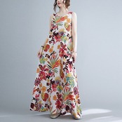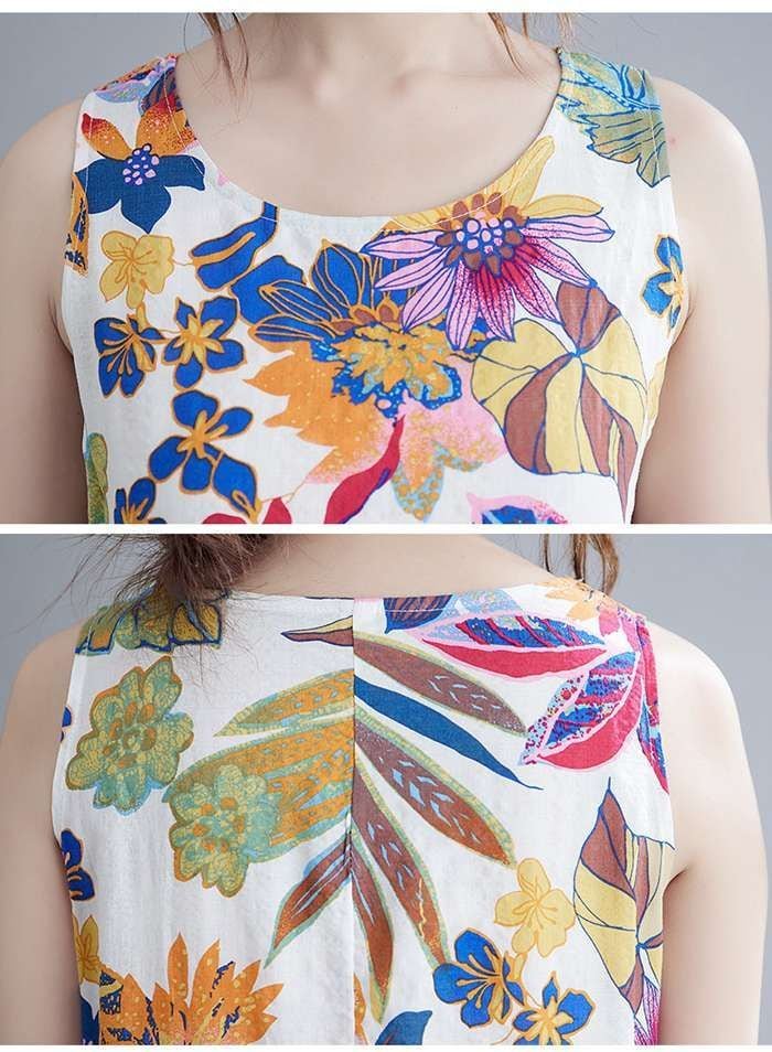 ワンピース 未使用レディース ノースリーブ 綿麻風 ロング丈 リネン混 ロングワンピース クルーネック 夏 花柄 カジュアル 体型カバー きれいめ ゆったり おしゃれ リゾートabm112 | オキナ商店