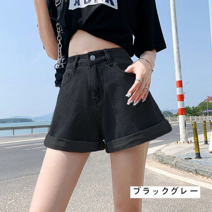 ショートパンツ デニム レディース ハーフパンツ ロールアップ デニムパンツ ショーパン ジーパン ポケット ショート丈 夏新作 夏服 半ズボン yishang06