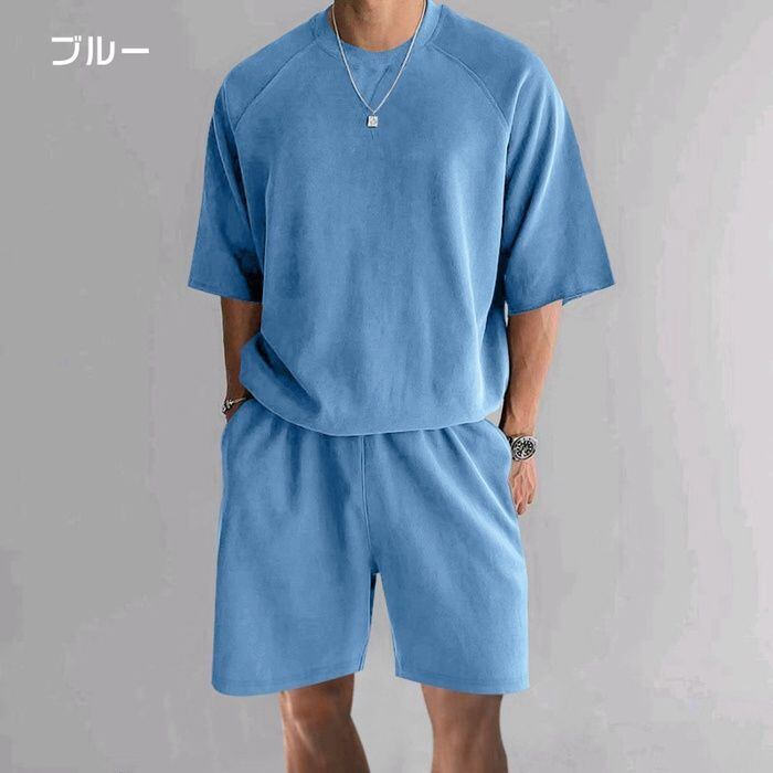 セットアップ 上下セット ジャージ メンズ 夏 無地 涼しい 体型カバー カットソー Tシャツ ハーフパンツ ゴルフウェア 父の日 プレゼント 運動 ランニング トレーニング 快適 yifengyu163 | オキナ商店