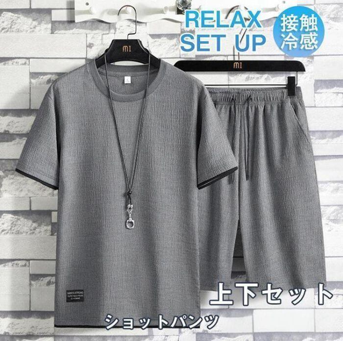 セットアップ メンズ 夏 半袖 ジャージ 上下セット ショットパンツ パンツ 部屋着 接触冷感 ひんやり トップス Tシャツ xzxiaoyun392