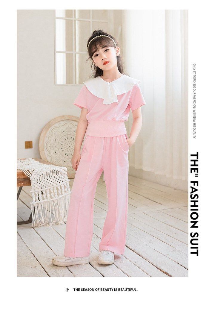 セットアップ キッズ ベビー服 女の子 ロングパンツ おしゃれ 可愛い 子供服 夏 上下セット トップス ボトムス ガウチョパンツ 長ズボン 入学 入園 誕生日 プレゼント 幼稚園 小学生mksenbao06