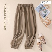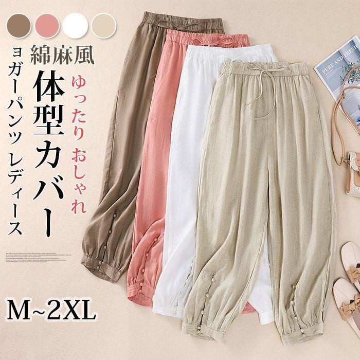 ジョガーパンツ購入OK レディース バルーンパンツ ウエストゴム 夏 リネン混 無地 綿麻風 ボトムス カジュアル 体型カバー きれいめ 通勤 OL オフィス ゆったり おしゃれabm101 | オキナ商店