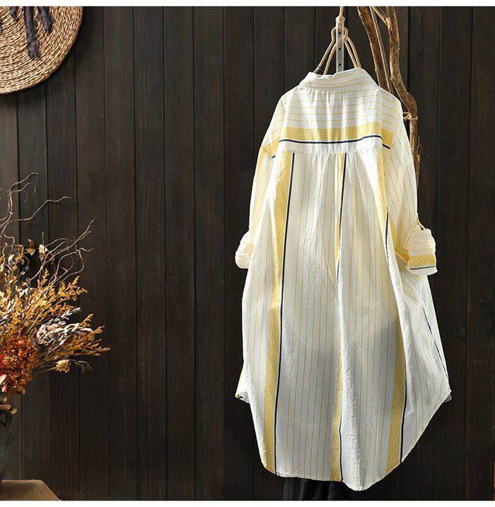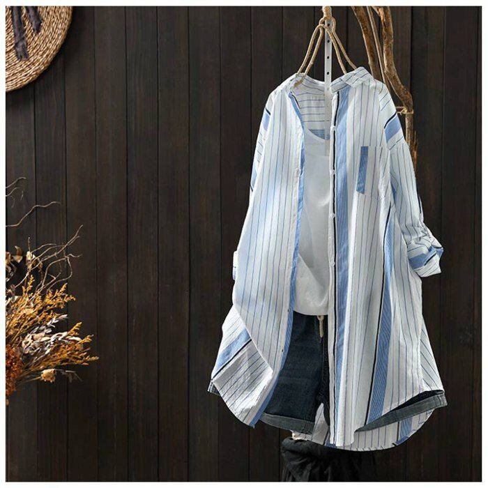 シャツワンピース レディース 長袖 薄手 夏 長袖 ストライプシャツ 紫外線対策 ロングシャツ UVカット ストライプ 大きいサイズ ゆったり 体型カバー シャツカーディガン 羽織り 着痩せ 大人 通勤 ナチュラル カジュアル chaoliu385 | オキナ商店
