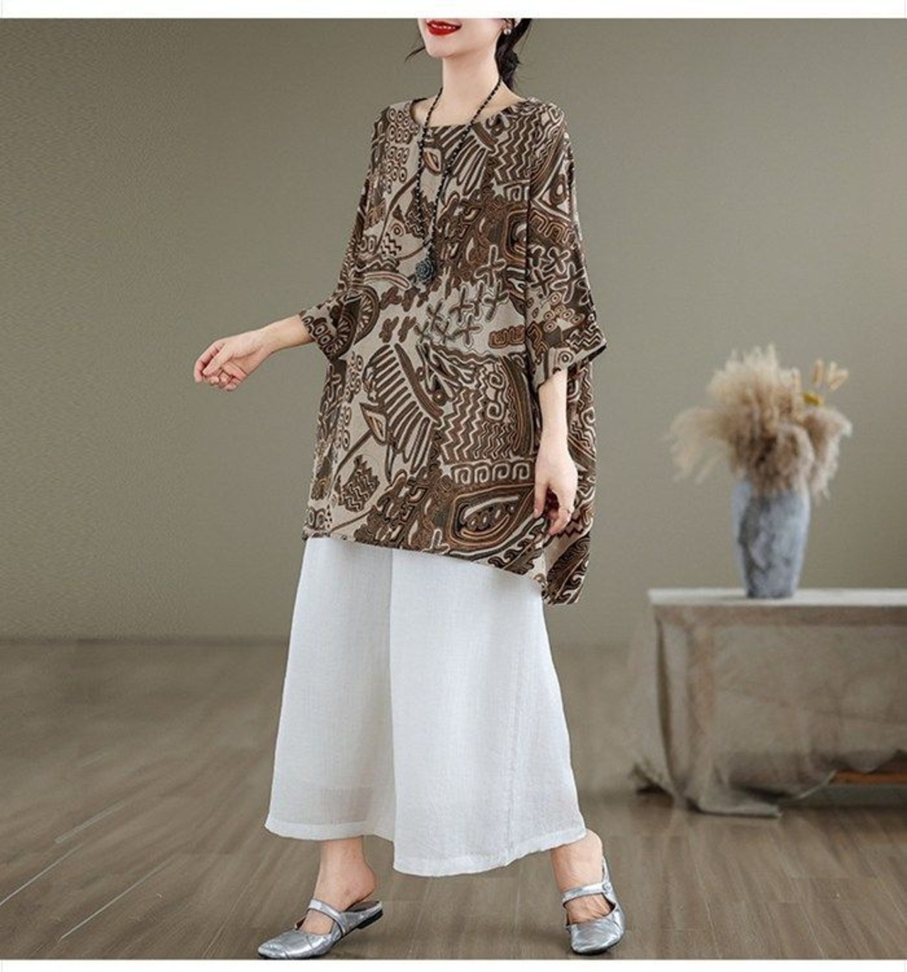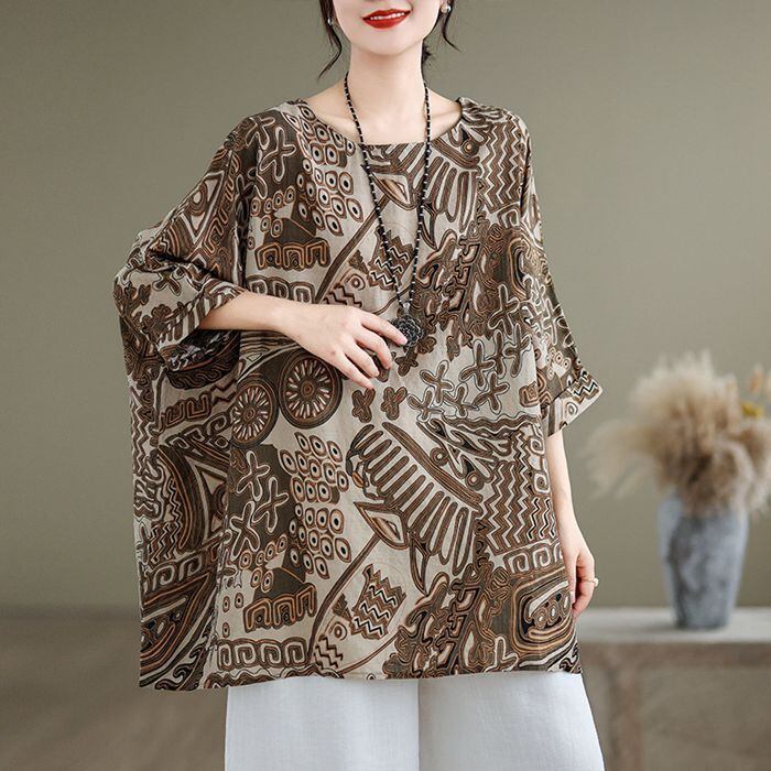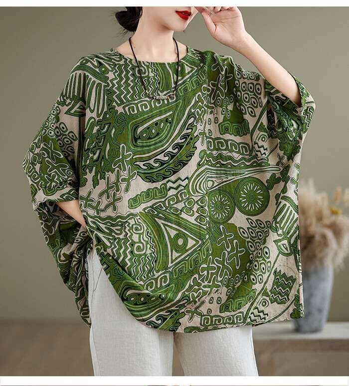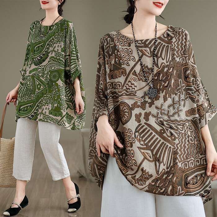 チュニック レディース ブラウス 夏 五分袖 チュニックワンピース 大人可愛い 大きいサイズ ゆったり 体型カバー ドルマンスリーブ ブラウス 総柄 クルーネック 森ガール キレイめ カジュアル 30代 40代 50代 60代 chaoliu382 | オキナ商店