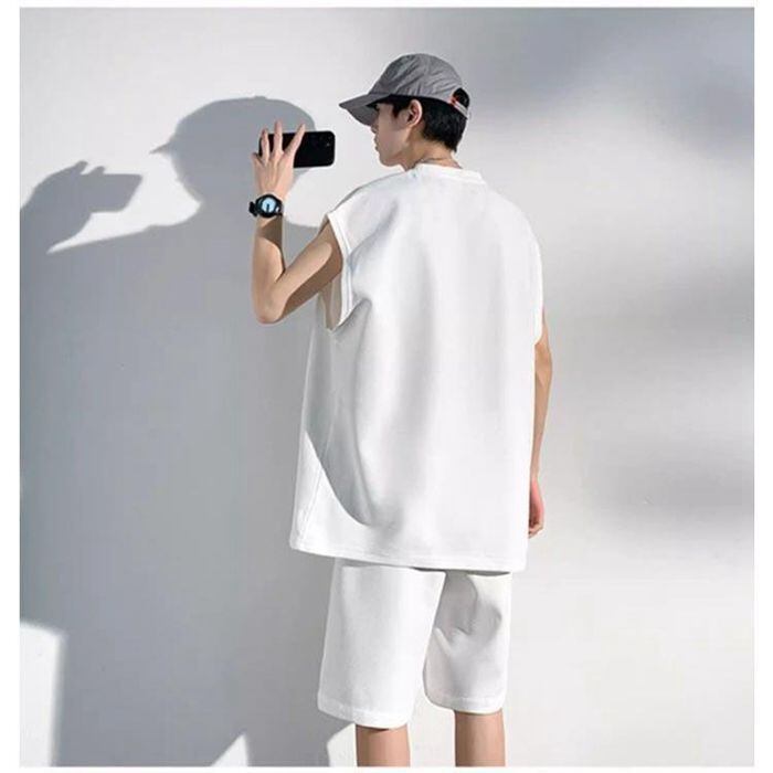 セットアップ タンクトップ 即購入OK メンズ Tシャツ おしゃれ 薄手 ワッフル 部屋着 上下セット ノースリーブ カジュアル 夏 ゆったり オーバーサイズ xzxiaoyun391 | オキナ商店