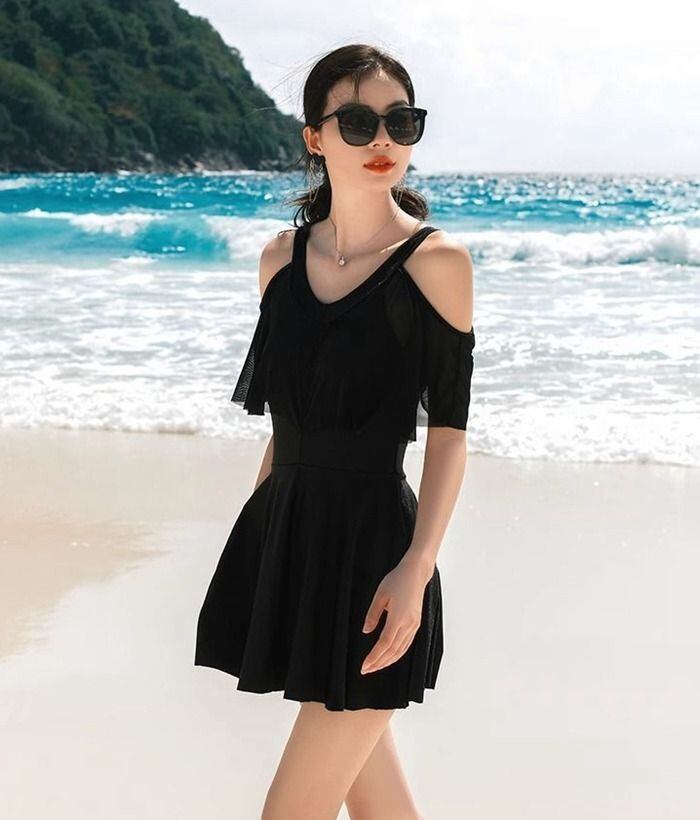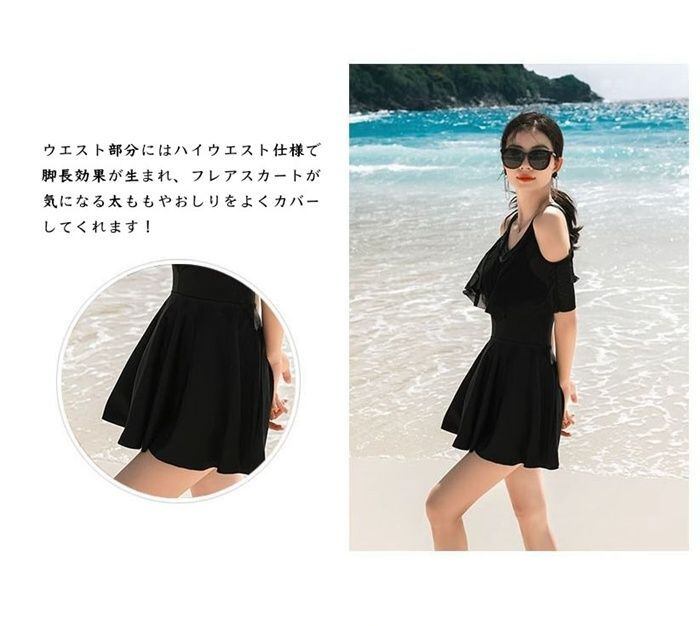 水着 レディース 体型カバー ワンピース オールインワン オフショルダー フレア 大きいサイズ 盛れる 韓国 軽量 大人 ビーチ 露出控えめ おしゃれ 海 プール ママ水着 20 30 40代 女性用 ママ水着wangyi01
