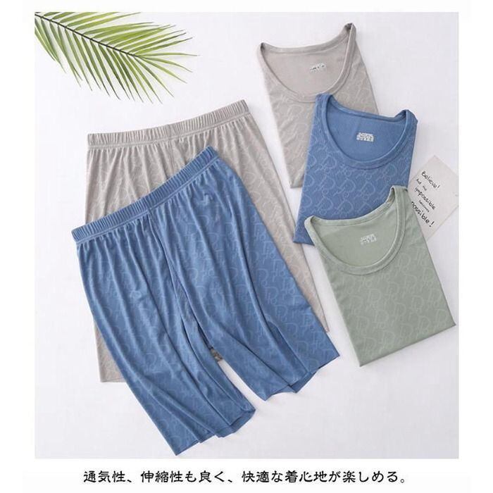 夏 パジャマ メンズ 上下セット 半袖 薄手 接触冷感 Tシャツ セットアップ 2点セット 柔らかく軽い 短パン ルームウェア 寝巻き 吸汗速乾 xzxiaoyun394