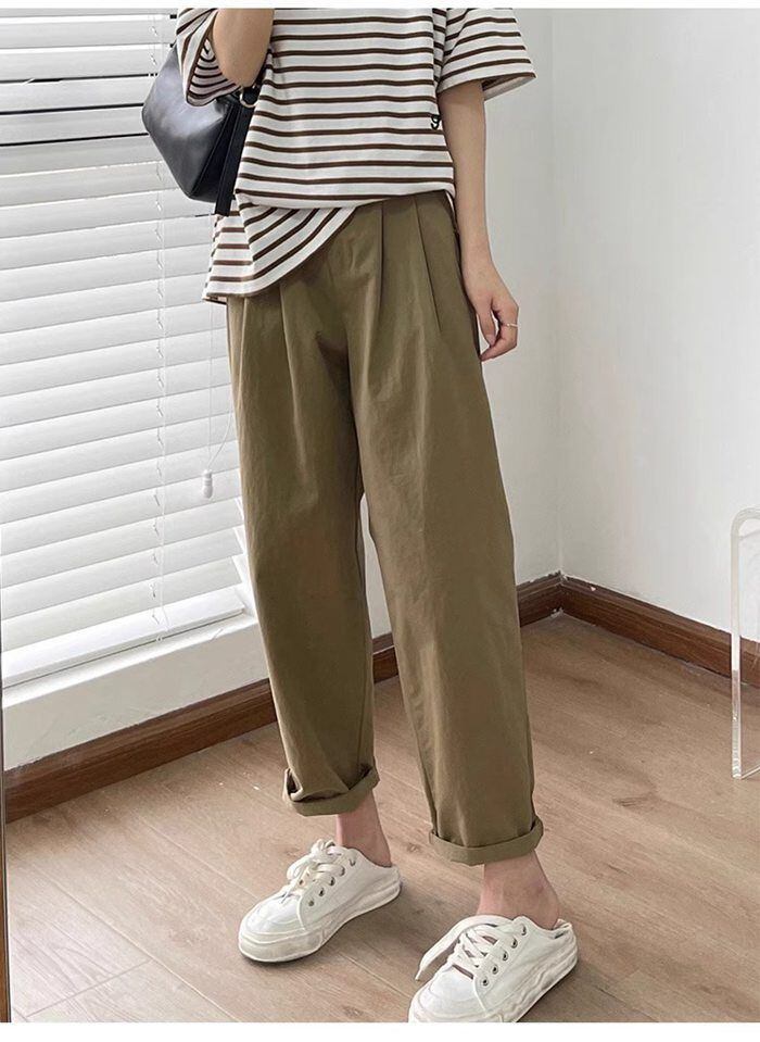 テーパードパンツ マタニティ パンツ レディース ボトムス ズボン チノパン ロングパンツ タック ボトムス ガウチョパンツ 美シルエット 無地 九分丈 体形カバー 大きいサイズ ゆったり 着痩せ シンプル ゆる感 大人 カジュアル shendian01 | オキナ商店