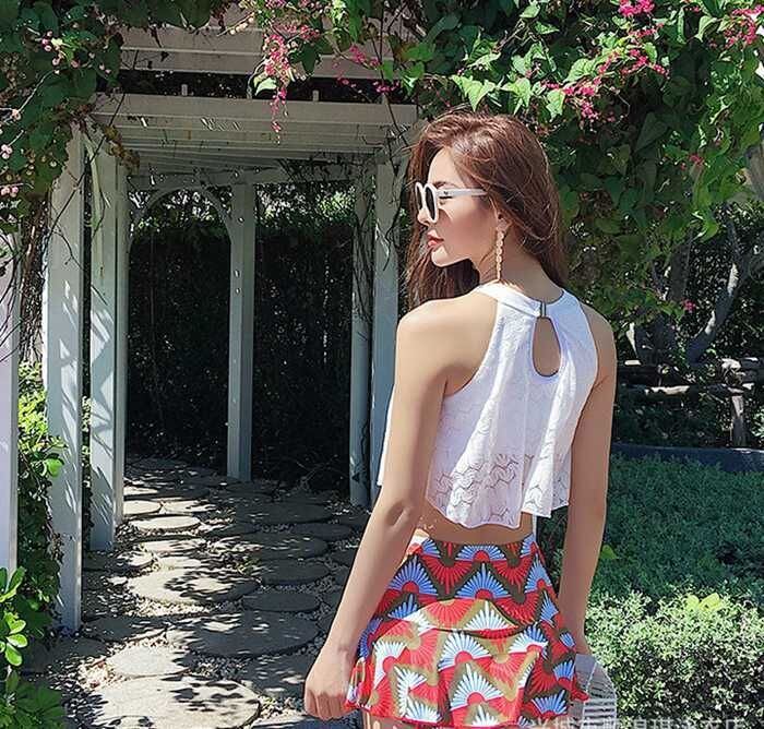 水着 レディース ハイネック 肩出し 体型カバー ビキニ スカート 上下2点セット レース フレア ビーチ セパレート水着 ママ水着 ノンワイヤー かわいい セクシー パッド付き 露出控えめ ハイネックビキニshunlang01 | オキナ商店