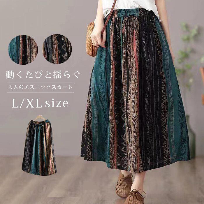 マキシスカート 夏 綿麻 リネンロングスカート フレア スカート エスニック 森ガール 花柄 ロング丈 薄手 ウエストゴム 動くたびヒラヒラと揺らか 柔らか 軽やか キレイめ レディース 大人 着?せ 体型カバー 大きいサイズ abm114 | オキナ商店