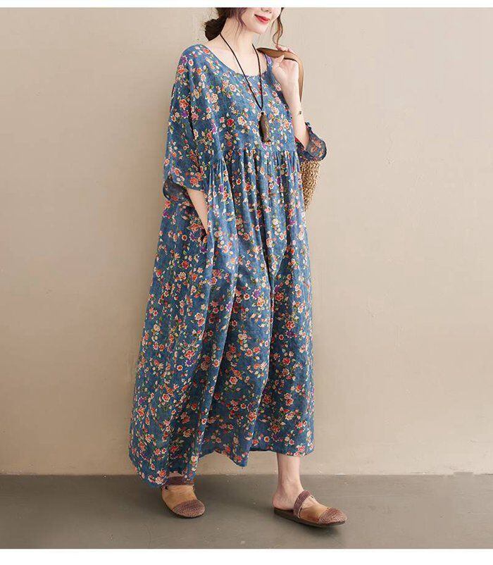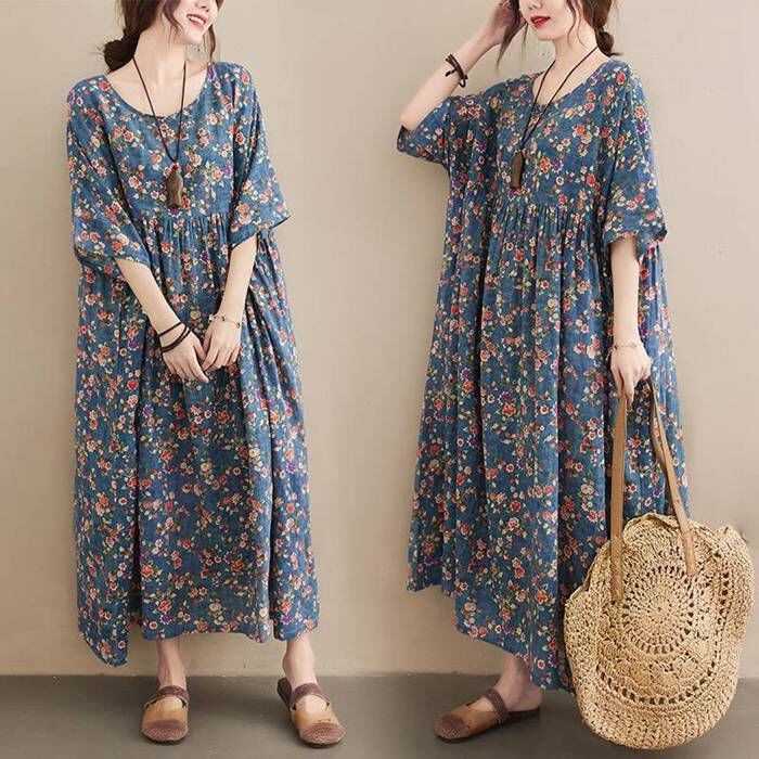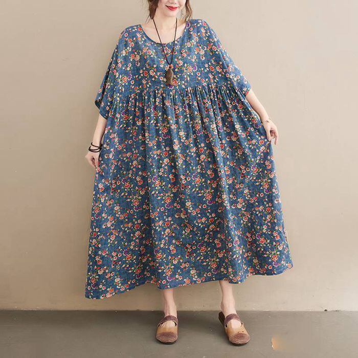 ワンピース 半袖 夏 大きいサイズ レディース 花柄 ロングワンピース マキシワンピース ゆったり ふんわり リゾートワンピース きれいめ 着痩せ 森ガール エスニック ナチュラル 送料無料 chaoliu394 | オキナ商店