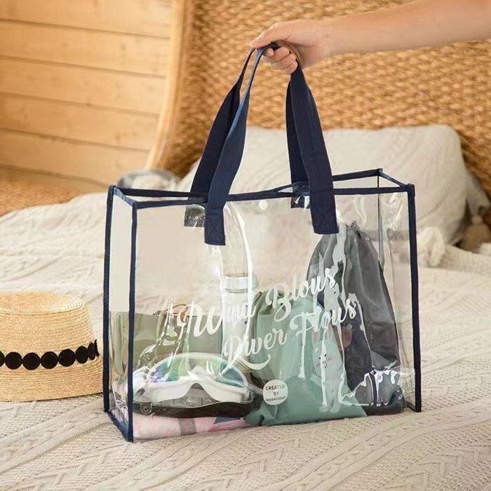 ビーチバッグ 大容量 プールバッグ クリアバッグ 軽量 PVC素材 ビニールバッグ 透明バッグ 防水バッグ トートバッグ 夏 海 イベント バッグ 鞄 レディース 女性用 お洒落 温泉 ビーチグッズ zhenxiang02 | オキナ商店