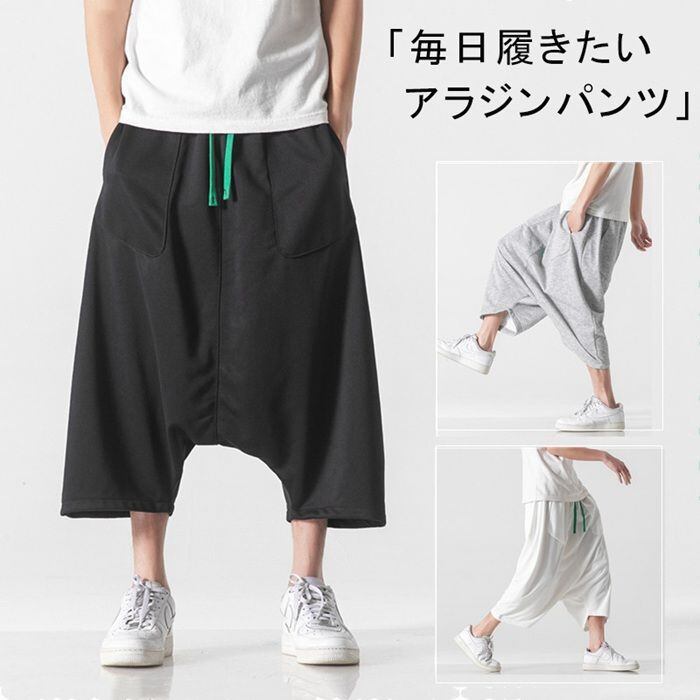 アラジンパンツ メンズ 袴パンツ ゆったり ダンス服 スウェット サルエルパンツ 七分丈 ガウチョ メンズ ワイドパンツ ストリート 夏 はかまパンツ 大きいサイズ レディース ユニセックス