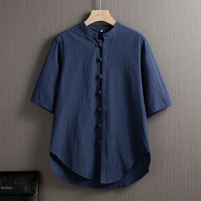 リネンシャツ メンズ シャツ チャイナ服 カジュアルシャツ 半袖シャツ コットン 薄手 綿麻シャツ メンズ スタンドカラー シャツ 麻シャツ トップス 薄手 涼しい リゾート コーデ 春 夏 父の日 40代 50代 甚平風