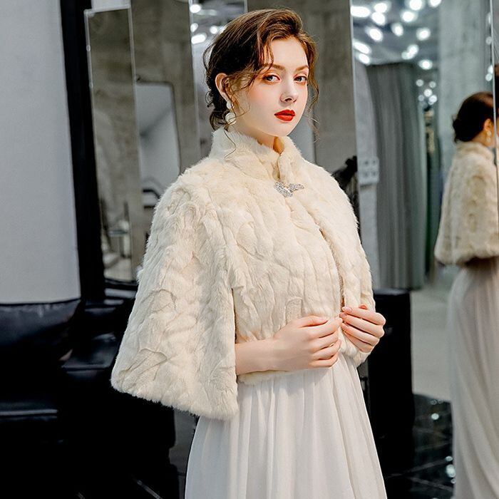 ハイネック ファーショール レディース ボレロ ケープ ファー ファー ポンチョ ふわふわ もこもこ ショール パーティー 冬 暖かい ドレス 可愛い 披露宴 二次会 演奏会 発表会 shankuan15 | オキナ商店