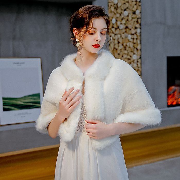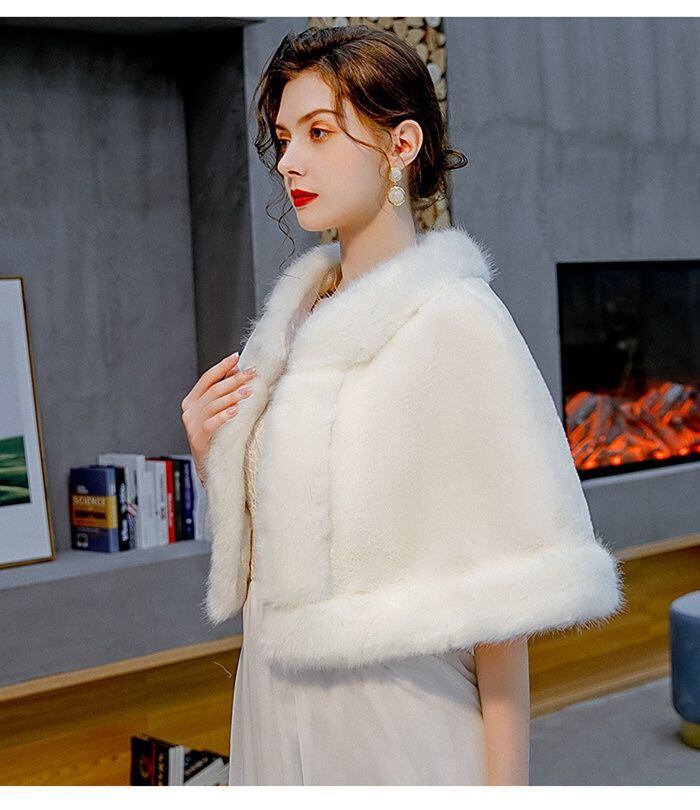 ファーショール レディース ボレロ ケープ ファー ファーポンチョ ふわふわ もこもこ ショール パーティー 冬 暖かい ウェディングドレス ポンチョ 披露宴 二次会 演奏会 発表会 shankuan11 | オキナ商店