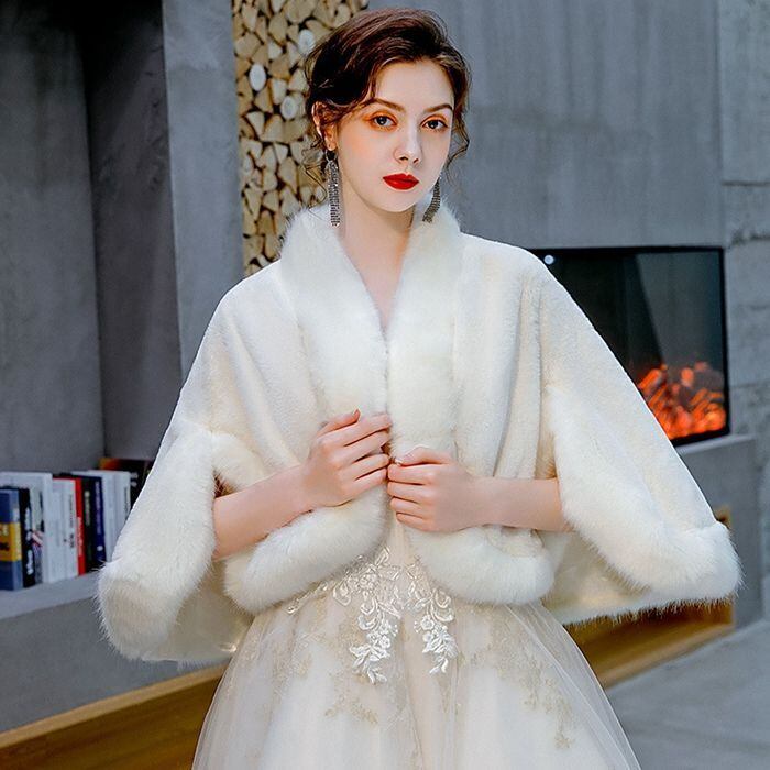 ボレロ レディース ファーショール ケープ ファー ファーポンチョ ふわふわ もこもこ ショール パーティー 冬 暖かい ウェディングドレス ポンチョ 可愛い 披露宴 二次会 演奏会 発表会 shankuan17 | オキナ商店