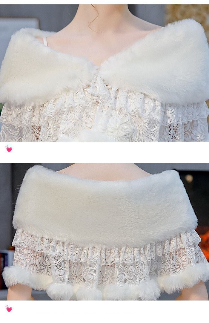 ファーショール レース 異素材 切り替え レディース ボレロ ケープ ファー ファーポンチョ ふわふわ もこもこ ショール パーティー 冬 暖かい ウェディングドレス ポンチョ 演奏会 発表会 shankuan14 | オキナ商店
