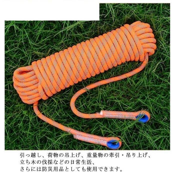 アウトドア クライミングロープ カラビナ付き ロープ 10mm 15m ロープ 登山 ザイル クライミング 多目的ロープ 多機能ロー