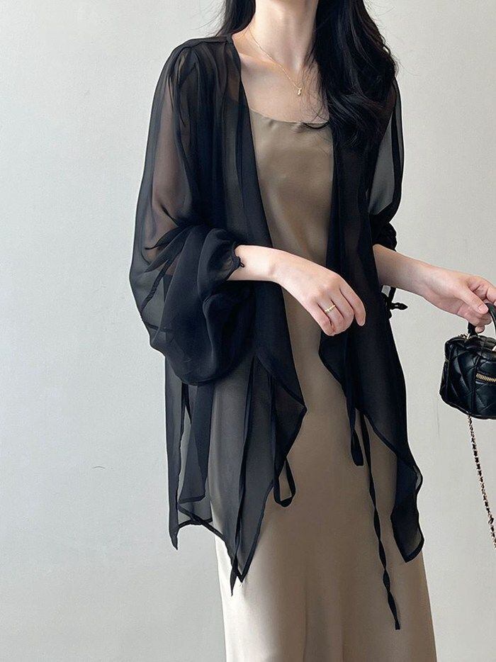 ロングカーディガン レディース シフォンカーディガン 夏 ロング カーディガン 透け感 柔らか 長袖 キレイめ ライトアウター 羽織 パフスリーブ ボリューム袖 ふんわり 日焼け対策 冷房対策 紫外線対策 薄手 爽やか カジュアル 大人可愛い オシャレ 送料無料 xiangying01
