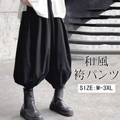 大きいサイズ 袴パンツ モード系 サルエルパンツ メンズ 和風 アラジンパンツ ガウチョパンツ ズボン 袴パンツ ボトムス 調整紐 無地 ゆったり パンツ 部屋着 八分丈 原宿系 韓国 夏 秋冬 おしゃれ