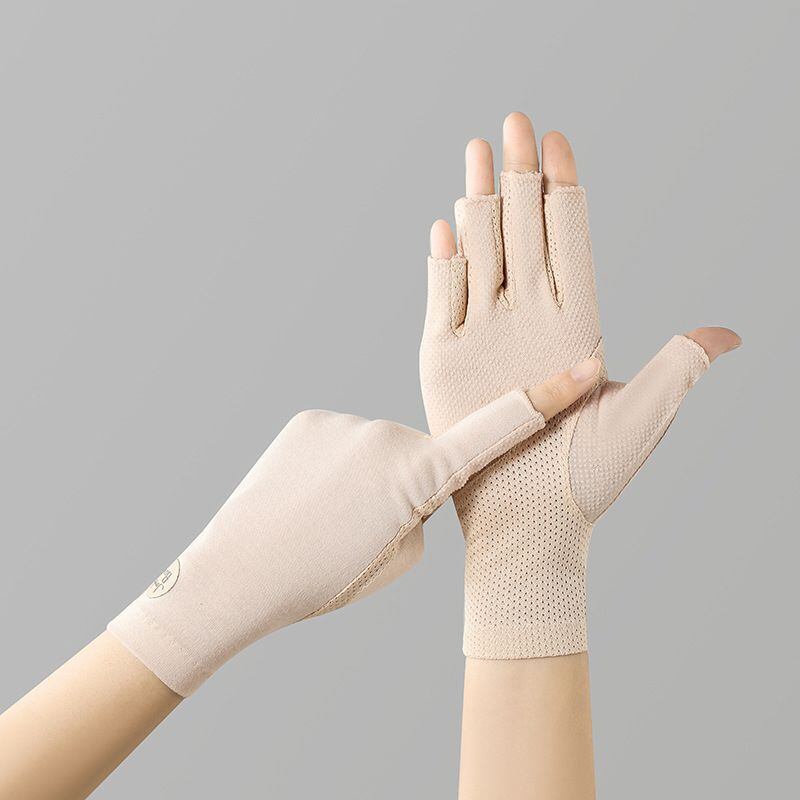シンプルなデザインでベーシックカラーの 指切り タイプ UV手袋 夏用手袋 。