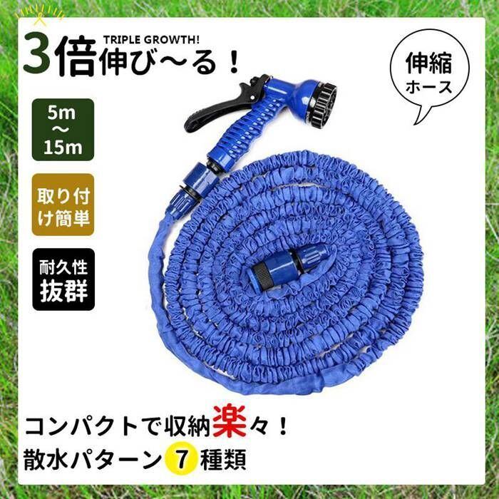 伸びるホース 15m リール 洗車ホース シャワーホース 散水ホース 伸縮 ジョイント 5m ノズル付き 蛇口 庭 収納 延長 丈夫 ガーデニング