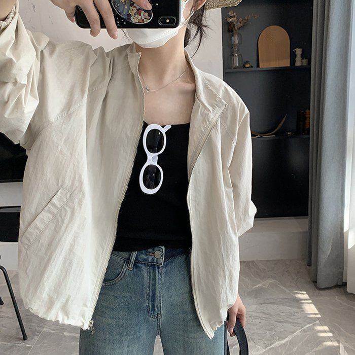ライトアウター マウンテンパーカー UVカット レディース 立ち襟 ジャケット 長袖 軽量 薄手 ショート丈 ウィンドブレーカー カジュアル 夏 ジャンバー 紫外線対策 UV対策 日焼け防止服 chisai01 | オキナ商店