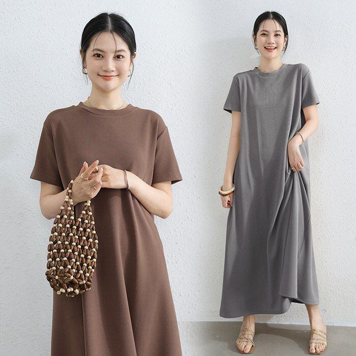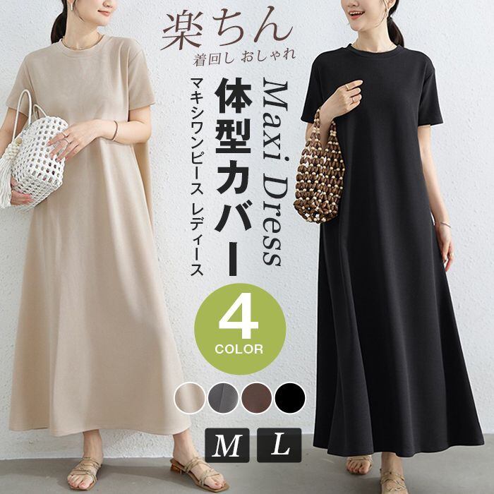 マキシワンピース レディース ロングワンピ 半袖 体型カバー 高見え 低身長 高身長 春 夏 大人 オーバーサイズ Tシャツワンピース ゆったり 大きいサイズ カジュアル 柔らか 大人可愛い ririt505 | オキナ商店