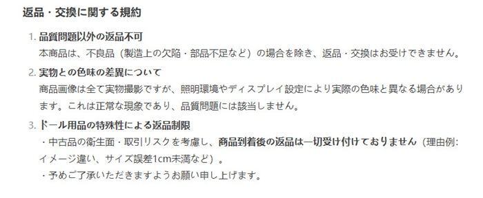 ?中古品の衛生面?取引リスクを考慮し、商品到着後の返品は一切受け付けておりません(理由例:イメージ違い、サイズ誤差1cm未満など)。