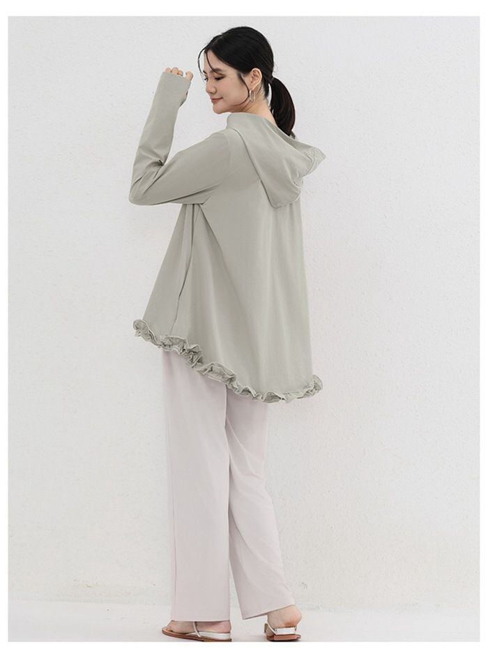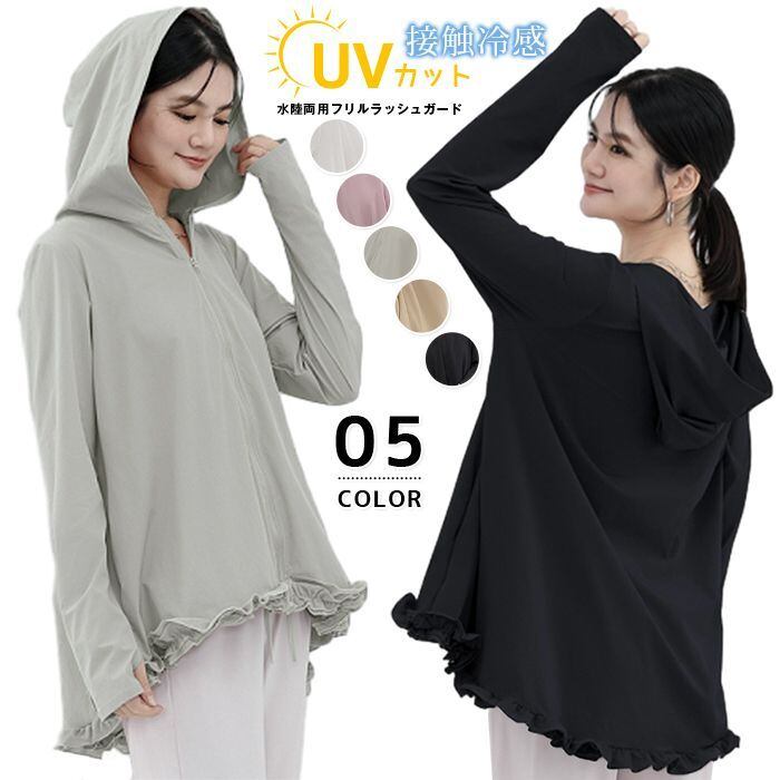 水陸両用フリルラッシュガード UVカット日焼け防止 水着 ラッシュガード レディース フード付き 長袖 トップス 速乾 ママ 水着 体型カバー フリル フレア 体型カバー UVパーカー 接触冷感 ririt501 | オキナ商店