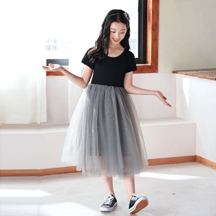 ワンピース 半袖 キッズ 女の子 春 夏 無地 Uネック チュール レース 子供服 柔らかい 発表会 結婚式 子供 おしゃれ 入学式 卒業式 カジュアルxinfeng22