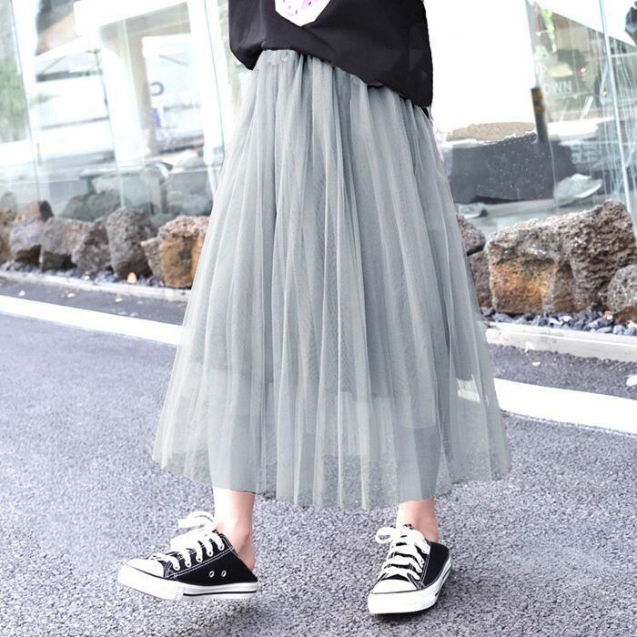 チュールスカート キッズ マキシ丈 女の子 プリーツ スカート フレア ウエストゴム チュチュスカート 卒園式 卒業式 子供 レース 無地 xinfeng20