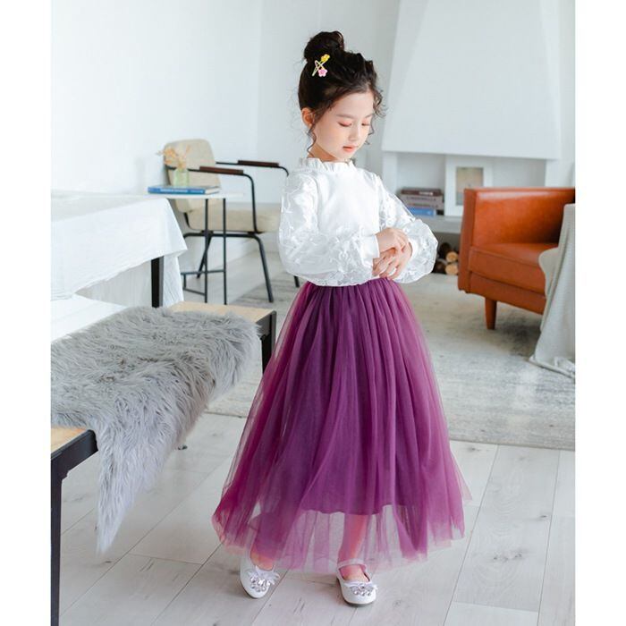 ロングスカート チュールスカート 女の子 キッズ 子供 マキシ丈 チュチュスカート スカート 無地 レース フレア ウエストゴム 卒園式 卒業式 xinfeng21