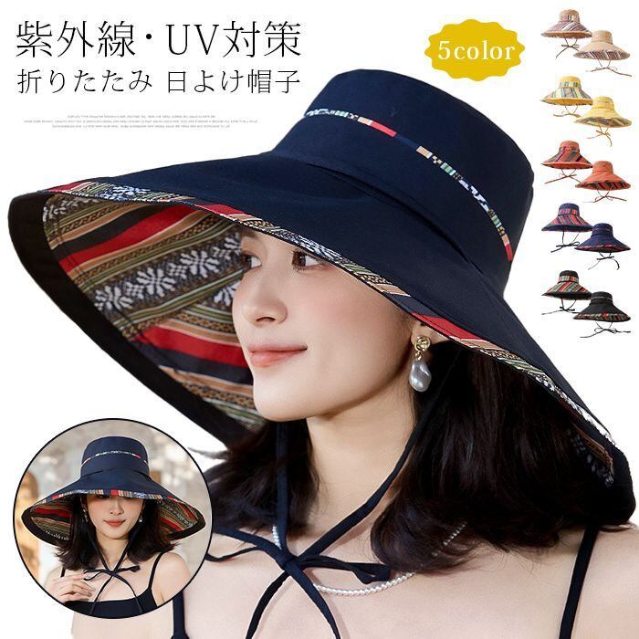未使用 帽子 ツバ広帽子 つば広 ハット パナマ帽 日よけ帽子 レディース UVカット 折りたたみ 日よけ 海 紫外線 女優帽 UV 対策 新作 女性用 春 夏用 旅行 jiuce370 | オキナ商店