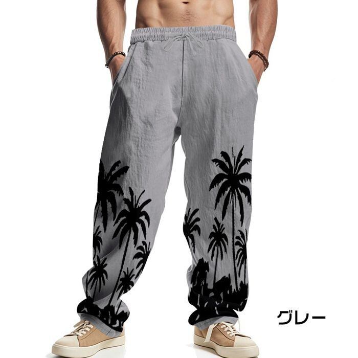カジュアルパンツ メンズ 綿麻風 ビーチウェア ロングパンツ ワイドパンツ 通気性 カジュアル 大人 メンズファッション ゆったり 夏 涼しい ボトムス 海 旅行40代 50代 60代 yifengyu141