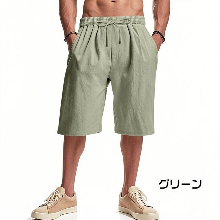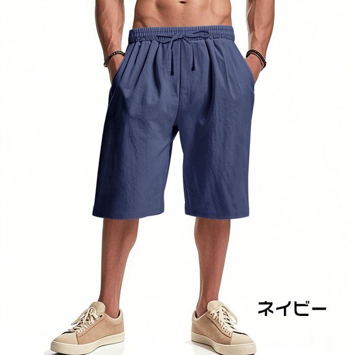 ハーフパンツ ショートパンツ メンズ ボトムス 夏 無地 綿麻風 半ズボン カジュアル シンプル 涼しい イージーパンツ ルームウェア 膝丈 シンプル 紐付き かっこいいyifengyu134