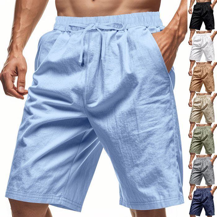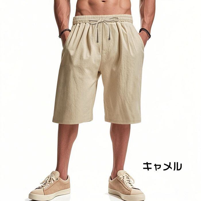 ハーフパンツ ショートパンツ メンズ ボトムス 夏 無地 綿麻風 半ズボン カジュアル シンプル 涼しい イージーパンツ ルームウェア 膝丈 シンプル 紐付き かっこいいyifengyu134 | オキナ商店