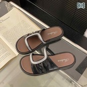 サンダル キラキラ ラインストーン アシンメトリー スリッパ シューズ レディース 黒 白 カーキ 個性的 ペタンコ ビーチサンダル フラット 軽い 可愛い 華やか モノトーン くしゅくしゅ ギャザーhyxz44 | オキナ商店