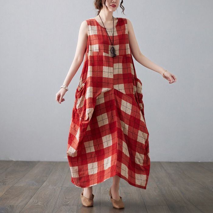 ワンピース マキシワンピース レディース 春 夏 チェック ノースリーブ ロング丈 フレア Aライン リゾート 大きいサイズ カジュアル 大人 ゆったり 体型カバー きれいめchaoliu295