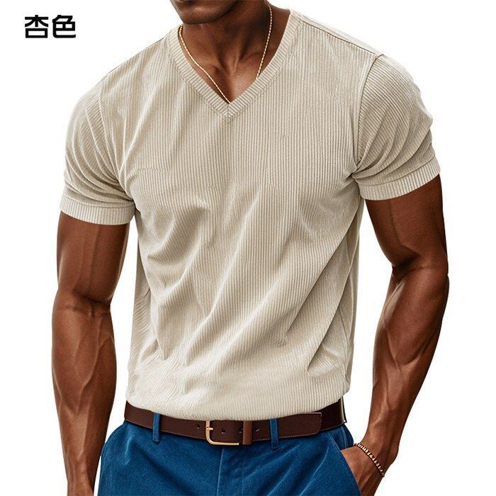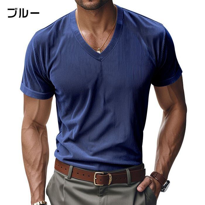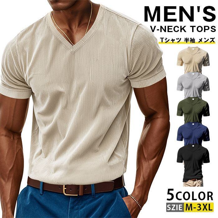 Tシャツ 半袖 メンズ トップス Vネック リブ スポーツウェア ゴルフ ルームウェア 部屋着 メンズファッション 40代 50代 60代 yifengyu121