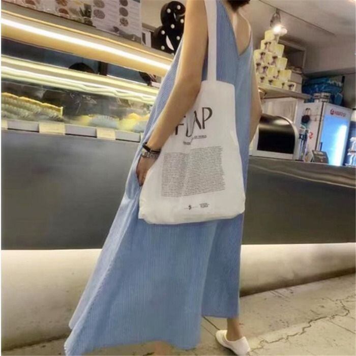 ワンピース レディース 夏 マキシワンピース ロング丈 体型カバー ゆったり ストライプ Vネック ノースリーブ Aライン シンプル フレア コーデ 着痩せyj66