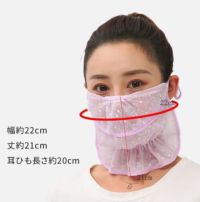フェイスカバー 紫外線対策 日焼け防止 UPF50+ マスク 総レース 刺繍 花柄 息が苦しくない 耳かけ 洗える 通気性 蒸れない UVカット 日焼け防止 涼しい ネックカバー フェイスガード フェイスマスク レディース junming12 | オキナ商店
