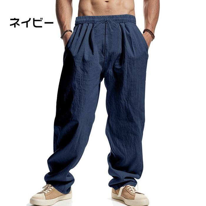 パンツ 麻 カジュアルパンツ メンズ 夏 ワイドパンツ ビーチウェア ロングパンツ ストレートパンツ 紳士 大人 メンズファッション ゆったり 涼しい ボトムス 40代 50代 60代 yifengyu117