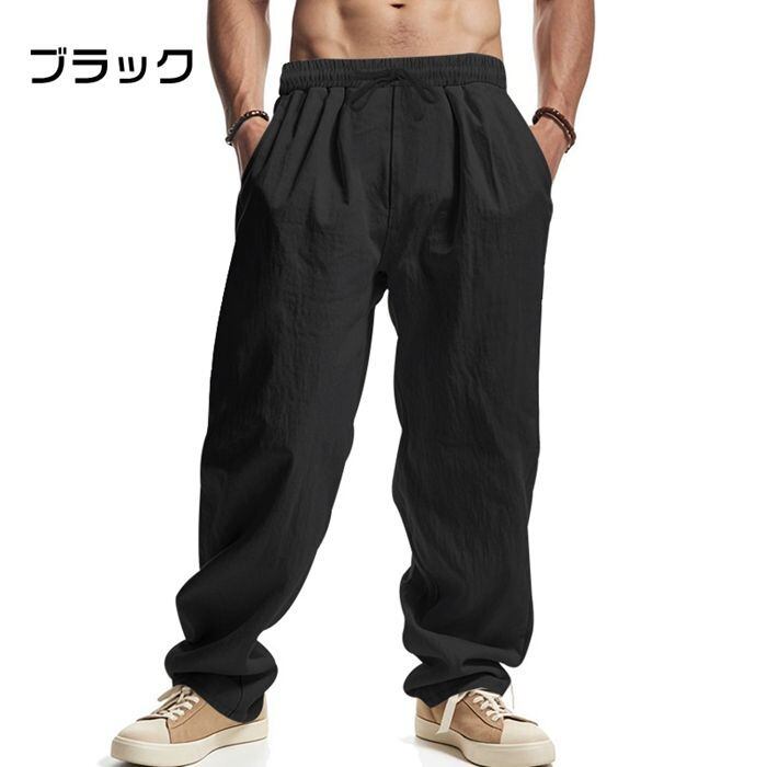 パンツ 麻 カジュアルパンツ メンズ 夏 ワイドパンツ ビーチウェア ロングパンツ ストレートパンツ 紳士 大人 メンズファッション ゆったり 涼しい ボトムス 40代 50代 60代 yifengyu117 | オキナ商店